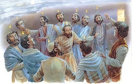 “És megtelének mindnyájan Szent Lélekkel, és kezdének szólni más nyelveken, a mint a Lélek adta nékik szólniok. …Péter azonban előállván a tizeneggyel, felemelé szavát, és szóla nékik: Zsidó férfiak és mindnyájan, kik lakoztok Jeruzsálemben, legyen ez néktek tudtotokra, és vegyétek füleitekbe az én beszédimet!… Térjetek meg és keresztelkedjetek meg mindnyájan a Jézus Krisztusnak nevében a bűnöknek bocsánatjára; és veszitek a Szent Lélek ajándékát… A kik azért örömest vevék az ő beszédét, megkeresztelkedének; és hozzájuk csatlakozék azon a napon mintegy háromezer lélek…”(Ap.Csel. 2. fejezet, Károli Gáspár fordítása)